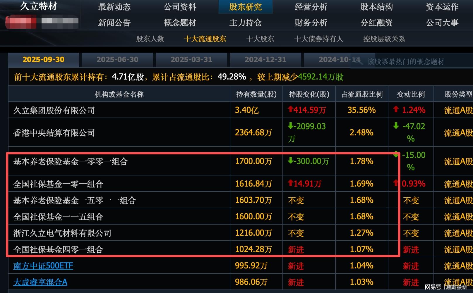 久立特材,5家社保集体持股18.39亿