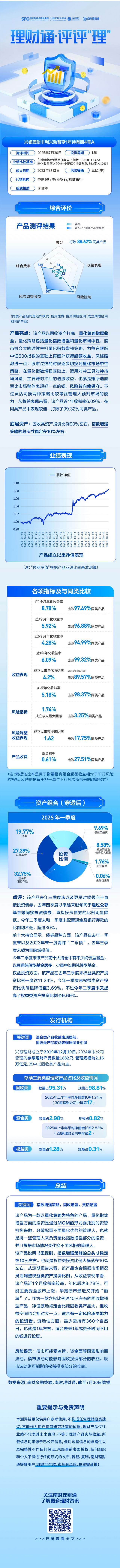 测评说明:理财通 · 评评"理"从投资者关心的收益、风险、费率等方面对理财产品进行综合测评。具体而言,评评"理"从四大维度对理财产品展开测评,分别为收益表现、风险控制、风险调整收益、综合费率,其中收益权重 40%、风险权重 30%、风险调整收益权重 20%、综合费率权重 10%(费率越低得分越高,费率数据来自说明书)。
