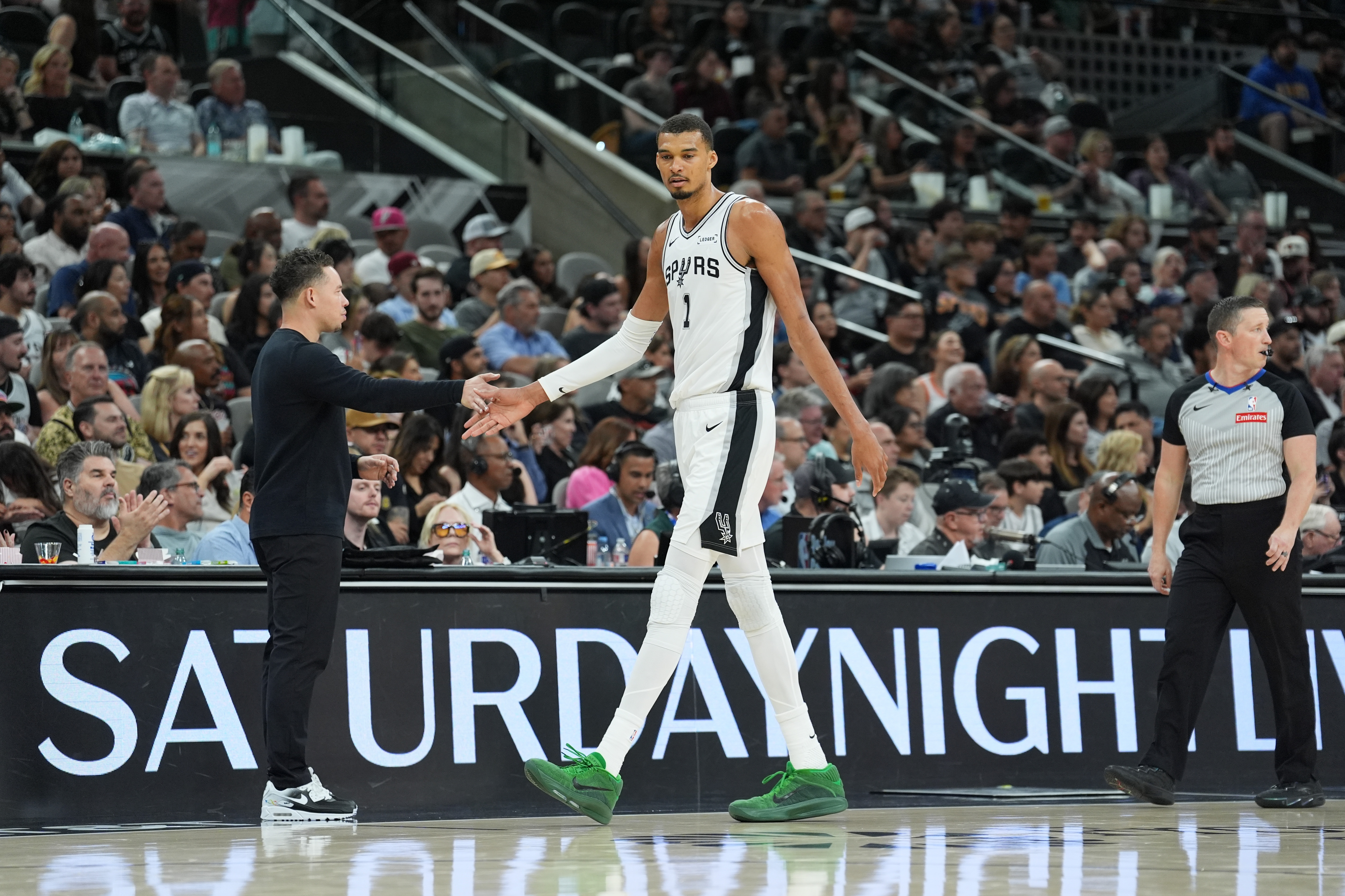 赛后,马刺主帅米奇·约翰逊在接受采访时表示,文班亚马的情况很不错。为了让文班保持比赛节奏,教练组让他留在了场上,这对他在实战中进行针对性训练、并为球队积累赛场经验而言是有必要的。