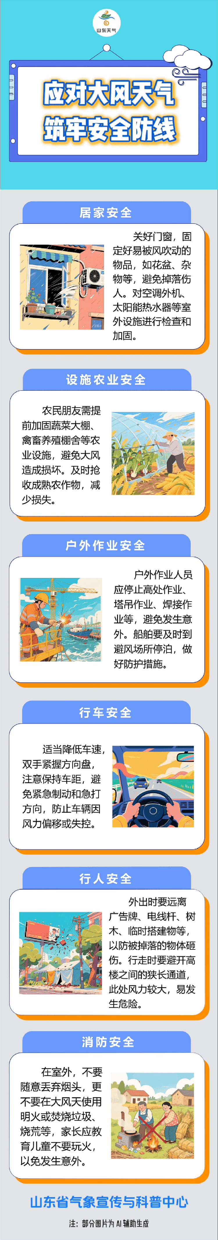 全省天气多云间晴。半岛地区北风4~5级阵风6~7级减弱到3~4级,其他地区北风短时南风3~4级。